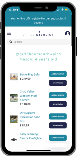 Tailor your wishlist with links to small brands, local baby classes, or even second-hand treasures for a truly personalised touch.