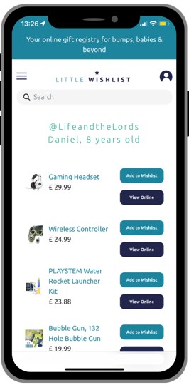 Add any item from any online store to your personalised gift registry, from baby essentials to unique finds.
