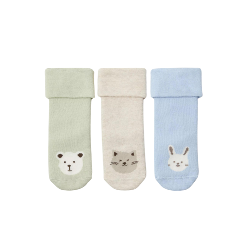 Little Wishlist - 3-pack Terry socks with Cats - Light Dusty Blue